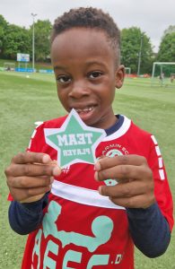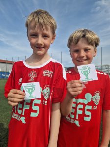 Bei unseren Junior-Camps gewinnen die Kinder Badges (Abzeichen), die wir vor Ort gleich auf die Trikots der Kinder drucken. Logos gibt es z.B. für den Gewinn der Champions-League, des AEFS-Cups, der Weltmeisterschaft, 11meter-Könige, starke und präzise Schüsse…